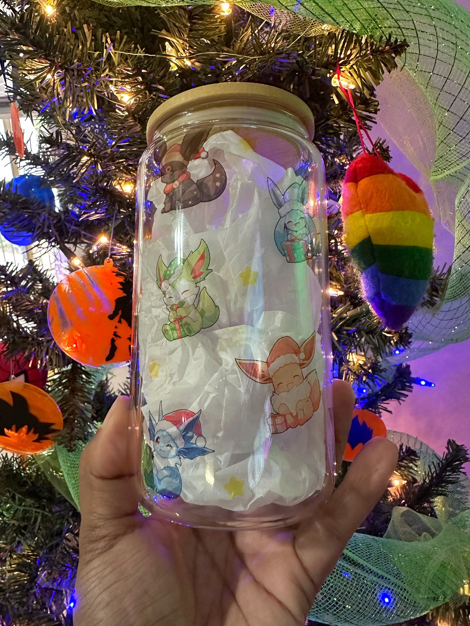 16oz Glass Can Eevee evolution Pokémon Pokemon Holidays Gifts 90 memories Christmas present