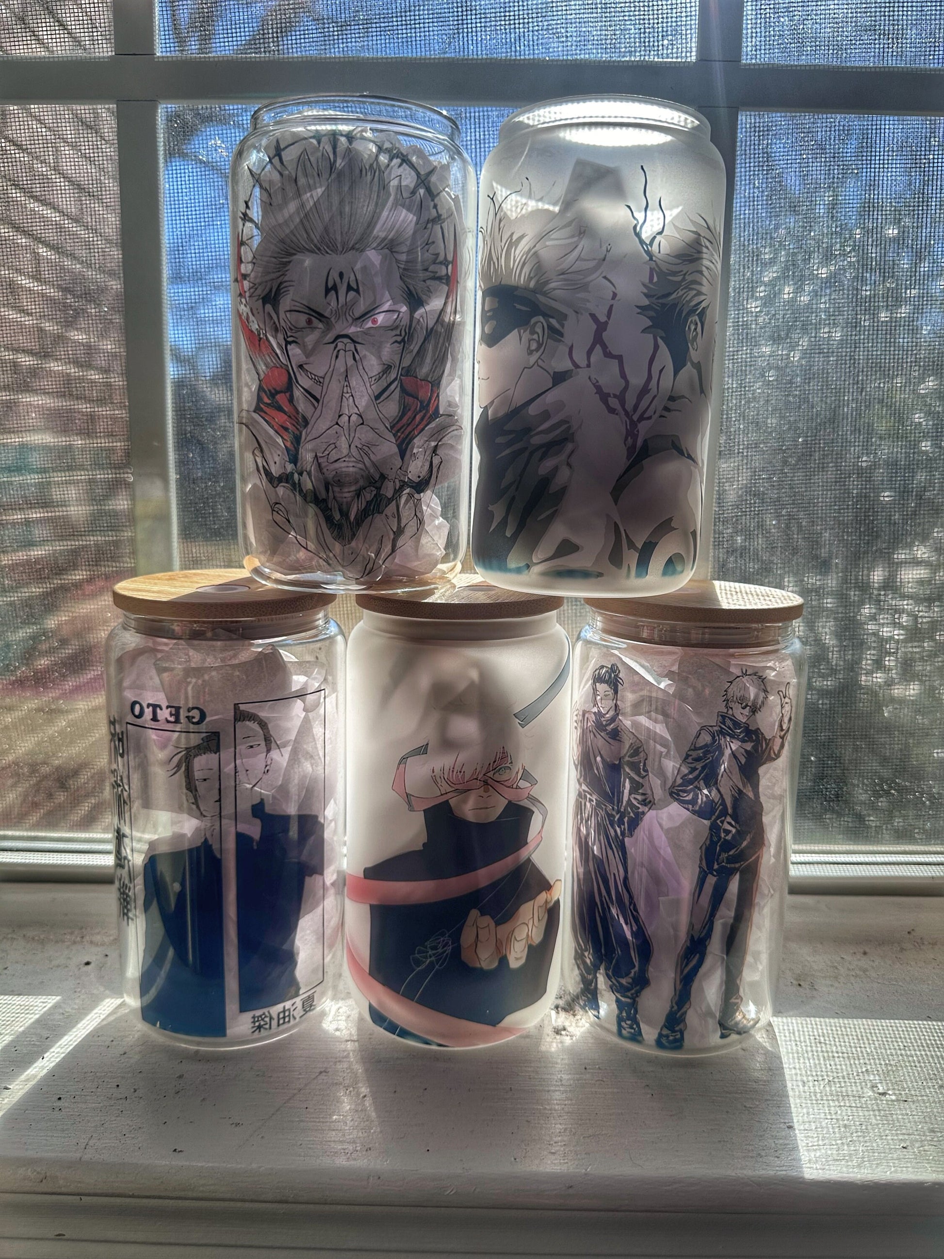16oz Glass can Geto Suguru Gojo Satoru Gojo Geto Sorcerers Best Friendo JuJutsu Kaisen Anime Glass Can 16oz anime cup Itadori Juji