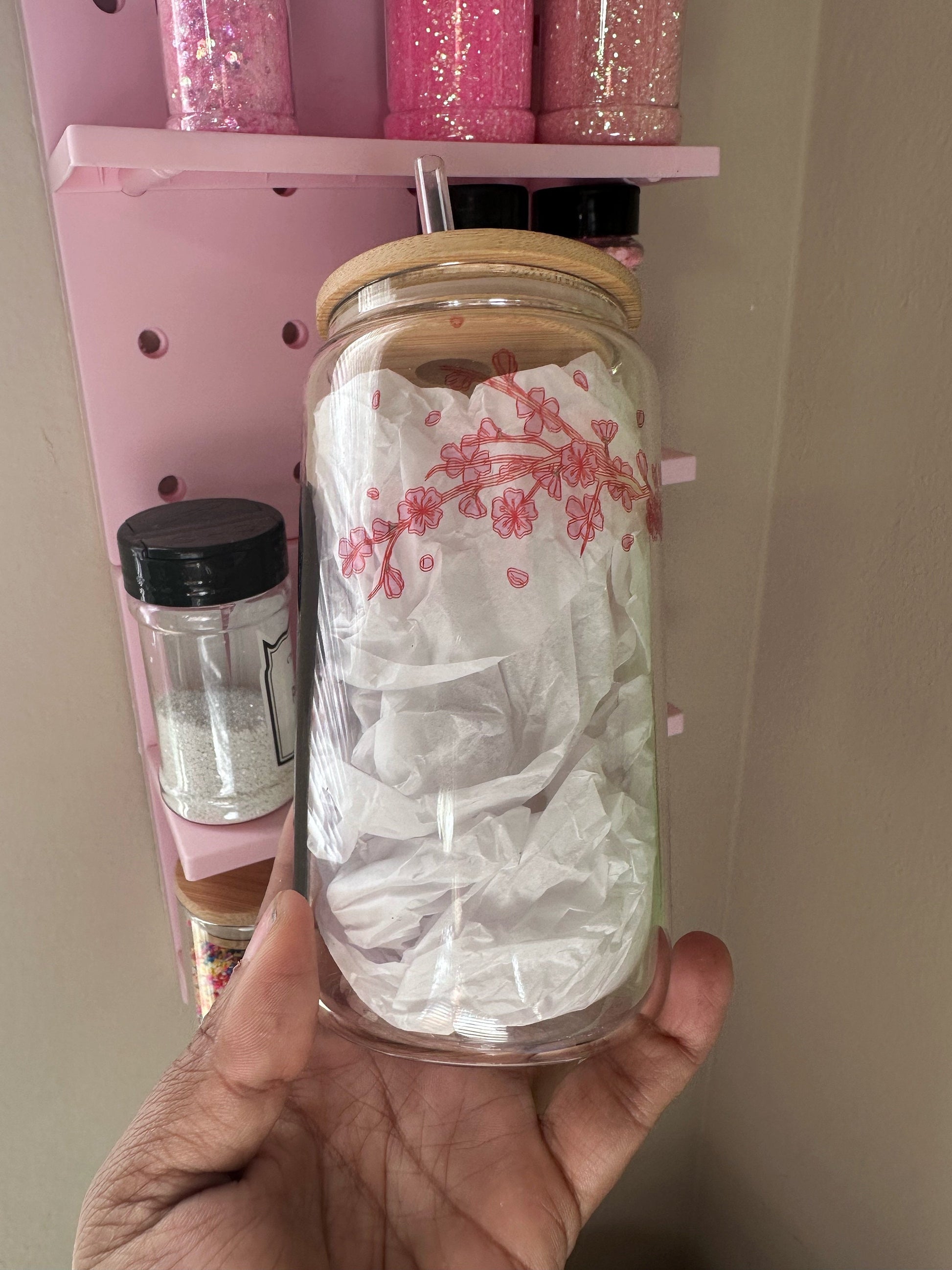 🌸My Happy Marriage Miyo Saimori and Lord Kudo, fantasy novel, cherry blossom, dream magic 16oz Glass, Beer Glass can, aesthetic beer glass can, tumbler, tumbler cups, handmade, pride drinks, anime, 90’s kids, millennials