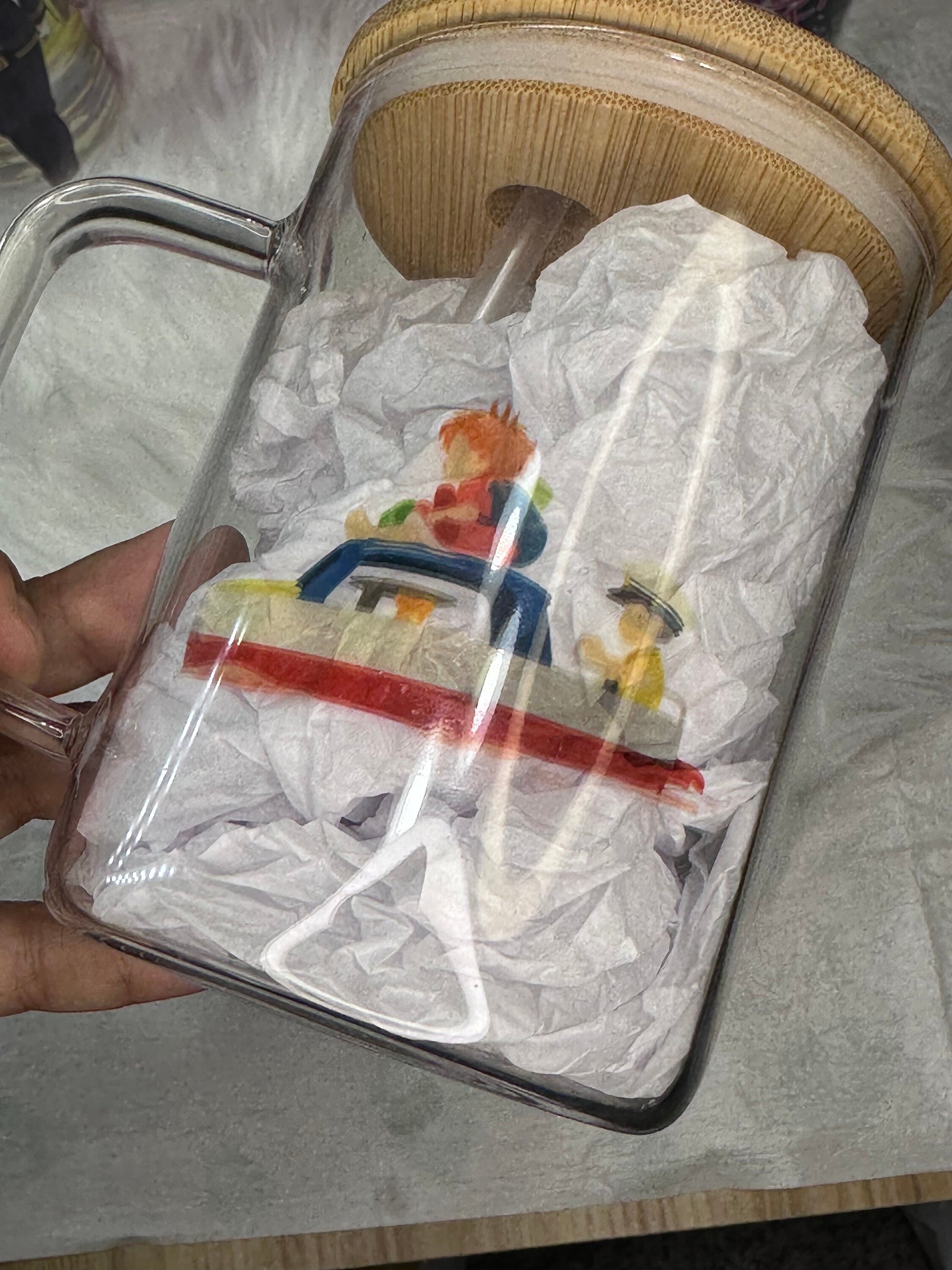 16oz Glass Can Ponyo & Sosuke 16oz Beer Can Glass - Studio Ghibli Anime Gift anime inspired Japanese film